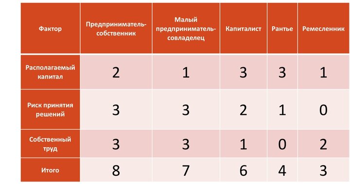 Со временем предприниматель перестаёт заниматься ремеслом и полностью отдаётся предпринимательской стихии, зарабатывая и расширяя свой предпринимательский капитал. Он начинающий или малый предприниматель, а со временем и предприниматель-собственник.